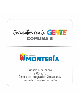 Montería. Mañana sábado 4 de enero, el alcalde de Montería, Carlos Ordosgoitia Sanin liderará el primer Encuentro con la Gente, espacio creado por el Gobierno de la Gente para escuchar a los habitantes de las diferentes comunas.