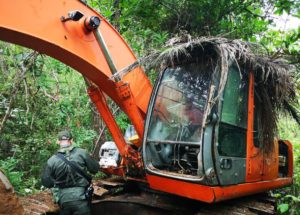 Fue así como los uniformados, al llegar al lugar capturan a tres hombres, quienes se encontraban extrayendo de manera ilegal minerales y otros materiales, además se realizó la destrucción de dos retroexcavadoras, una draga y la incautación de tres motobombas.
