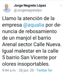 Alcalde de Lorica hace llamado de atención a la Empresa “AQUALIA” por rebosamiento de un manjol en el barrio Arenal sector calle nueva, de igual manera sucede en el Barrio San Vicente porque se sienten olores insoportables que salen de los manjoles