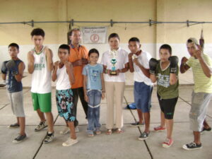 Luis Hernández, con un grupo de boxeadores, en el antiguo Coliseo de Combates de Cereté.