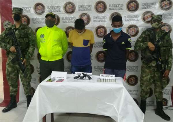 «En otro punto del municipio de Montelíbano dos sujetos que responden a los alias de ‘Kiko’ y ‘Moncayo’ fueron sorprendidos por las tropas con un revolver calibre 38mm, 20 cartuchos calibre 38 mm y dos celulares», se agrega en el comunicado conocido este 3 de julio.