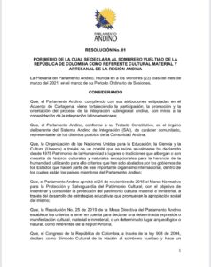 Sombrero Vueltiao declarado referente Cultural de Colombia por el Parlamento Andino