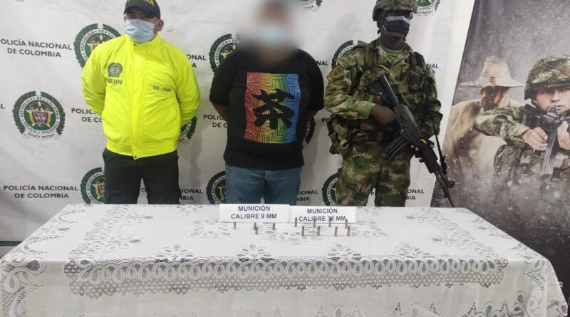 Montería. Mediante información de fuente humana, personal de la Seccional de Investigación Criminal en la Unidad Investigativa Contra la Delincuencia Organizada, Seccional de Inteligencia Policial, con el apoyo del Batallón de infantería No. 33 Batalla Junín, realizaron diligencia de allanamiento y registro a dos inmuebles en el sur de la ciudad, donde se logra la captura en flagrancia de un hombre de 38 años de edad, a quien se le encontraron 08 cartuchos calibre 38 mm y 04 cartucho calibre 9 mm, al solicitarle el permiso para portarlos indica que no los tiene.