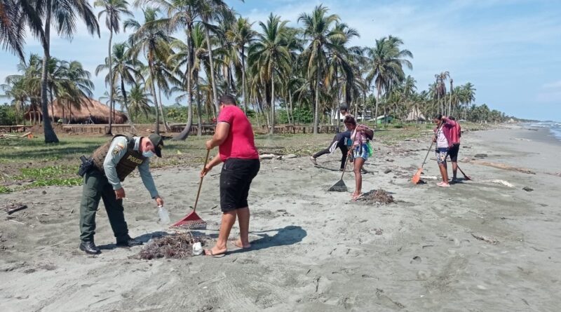 *San Bernardo del Viento, Córdoba.* La Policía Nacional en conjunto con la Alcaldía municipal y comunidad en general, realizaron campaña de limpieza en playas en esta región del departamento de Córdoba.