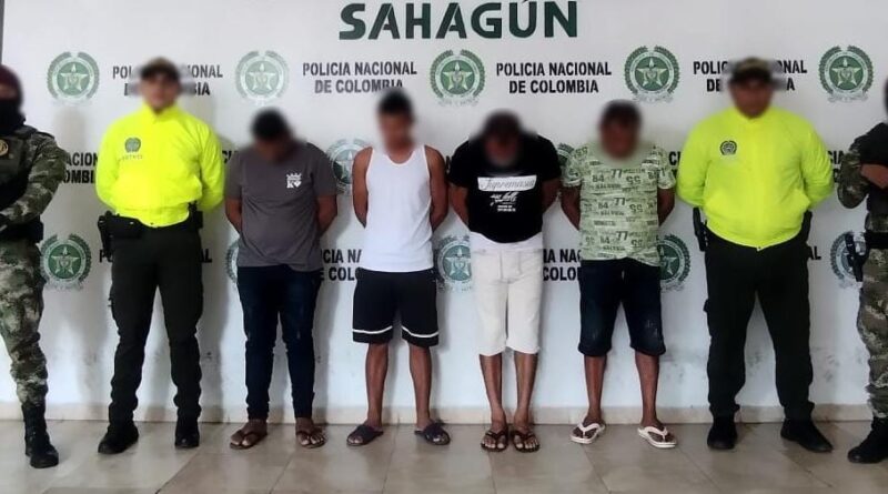 Sahagún, Córdoba. En el marco de la “Seguridad Humana”, uniformados de la Seccional de Investigación Criminal SIJIN, con el apoyo del Ejército Nacional y en articulación con la Fiscalía General de la Nación, lograron mediante diligencia de allanamiento y registro, la captura de cuatro presuntos delincuentes, señalados presuntamente comercializar estupefacientes, delito que afectan la seguridad personal.