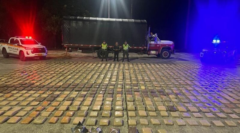 Planeta Rica, Córdoba. Un cargamento de marihuana, fue incautado en la vía que de Caucasia conduce a esta localidad (sector báscula Los Manguitos), momentos en que uniformados de la Seccional de Tránsito y Transporte del Departamento de Policía Córdoba realizan actividades de registro y control.