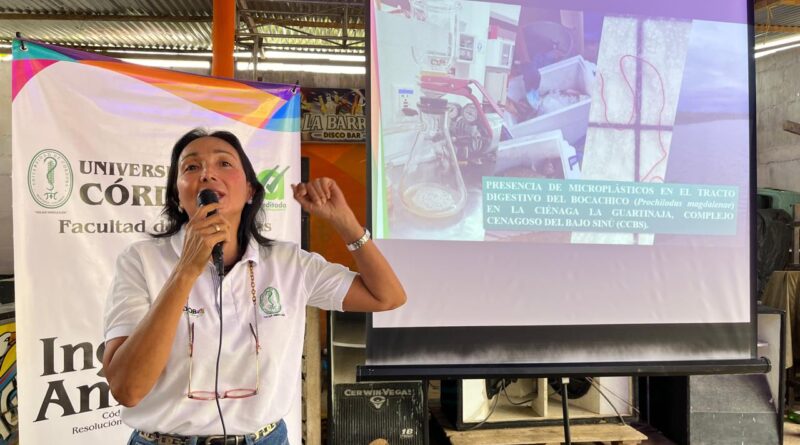 Por su parte, la profesora Diana Herazo Cárdenas, del programa de Acuicultura, explicó su papel en la evaluación de microplásticos en el bocachico, una especie vital tanto económica como culturalmente para las comunidades del Bajo Sinú. “Dentro de los resultados obtenidos, tuvimos la aparición o la presencia de microplásticos de características de fibras en el 100% de todos los organismos muestreados. Esto nos indica que los resultados obtenidos en la matriz agua y en la matriz sedimentos se están reflejando en la alimentación del bocachico”, comentó Herazo.